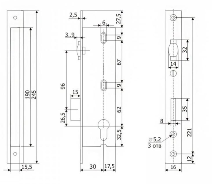 Гардиан PROFI 30.11Р.16 б/о без ц/м с/ролик.ЗЩ Замок врезной б/руч