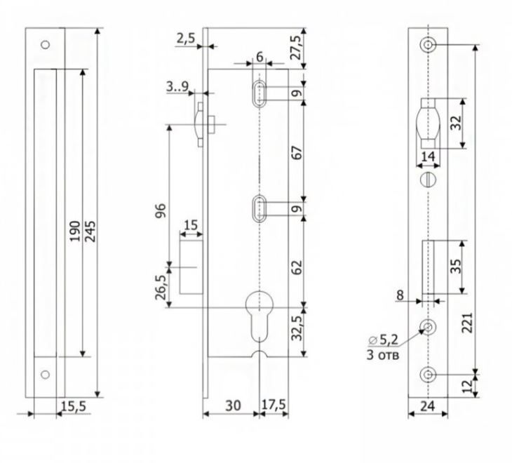 Гардиан PROFI 30.11Р.24 б/о без ц/м с/ролик.ЗЩ Замок врезной б/руч