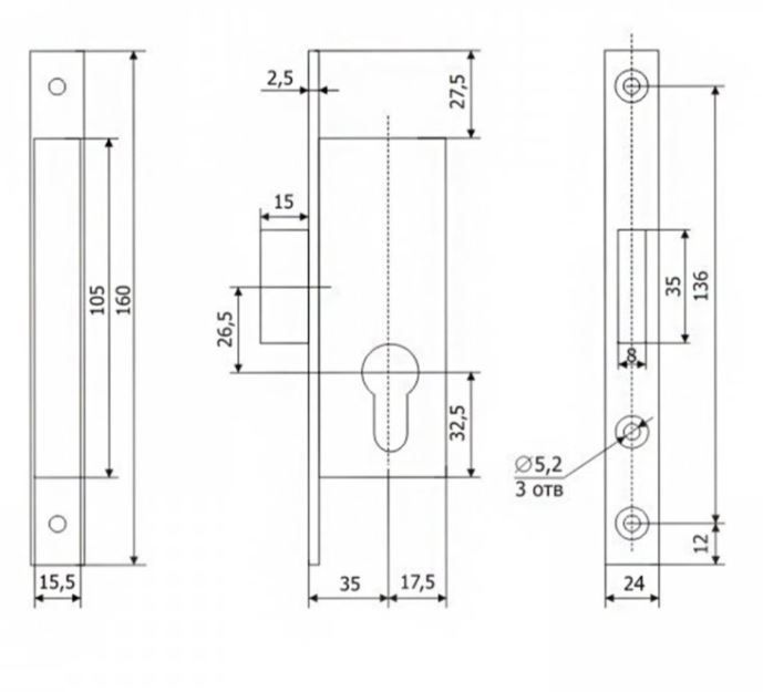 Гардиан PROFI 35.01.24 б/о без ц/м Замок врезной б/руч