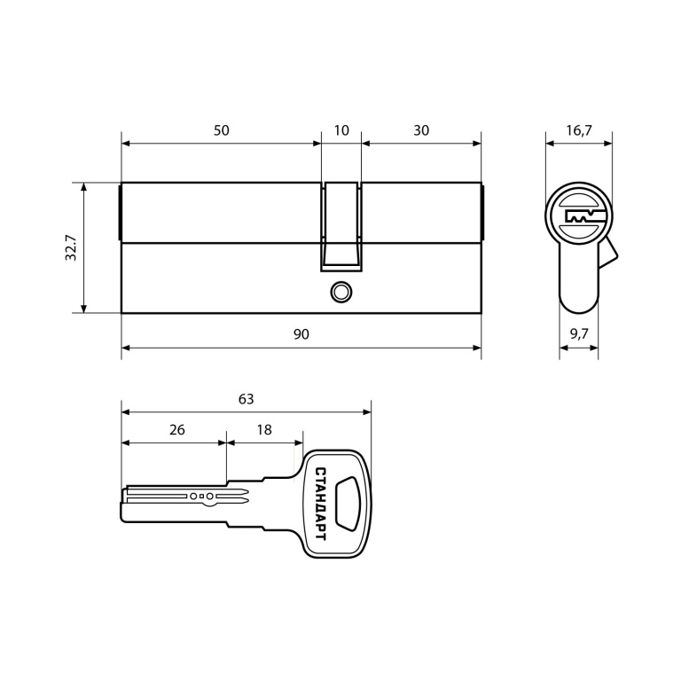 Стандарт F-01 90(30х10х50) GP 5кл золото перф. ключ/ключ Цилиндровый механизм
