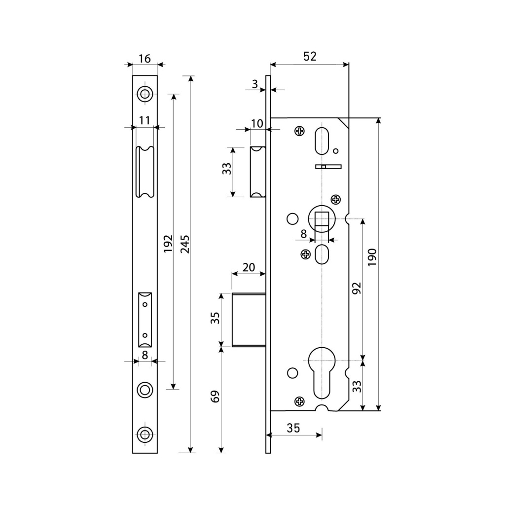 БУЛАТ ЗВ 4-1.35.92.16.08 нерж. сталь 35мм с/о, под ц/м, м/о 92мм Замок врезной б/руч