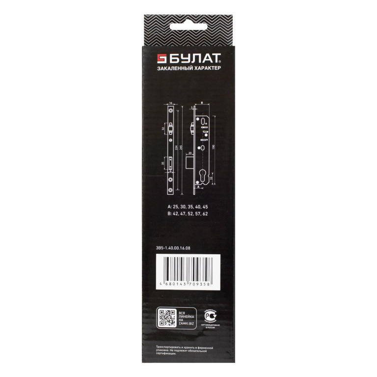 БУЛАТ ЗВ 5-1.40.00.16.08 нерж. сталь 40мм рол.зщ с/о, под ц/м Замок врезной б/руч