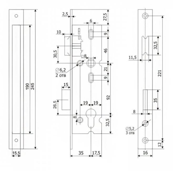 Гардиан PROFI 35.11.16 б/о без ц/м, м/о 92 мм Замок врезной б/руч